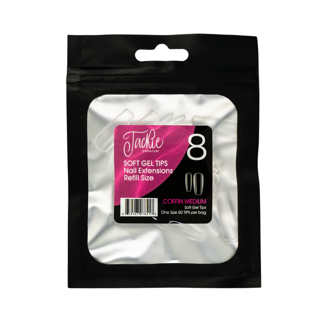 JACKIE SIGNATURE | SOFT GEL TIPS REFILL BAGS - COFFIN MEDIUM (50pcs) #8 is backordered and will ship as soon as it is back in stock.